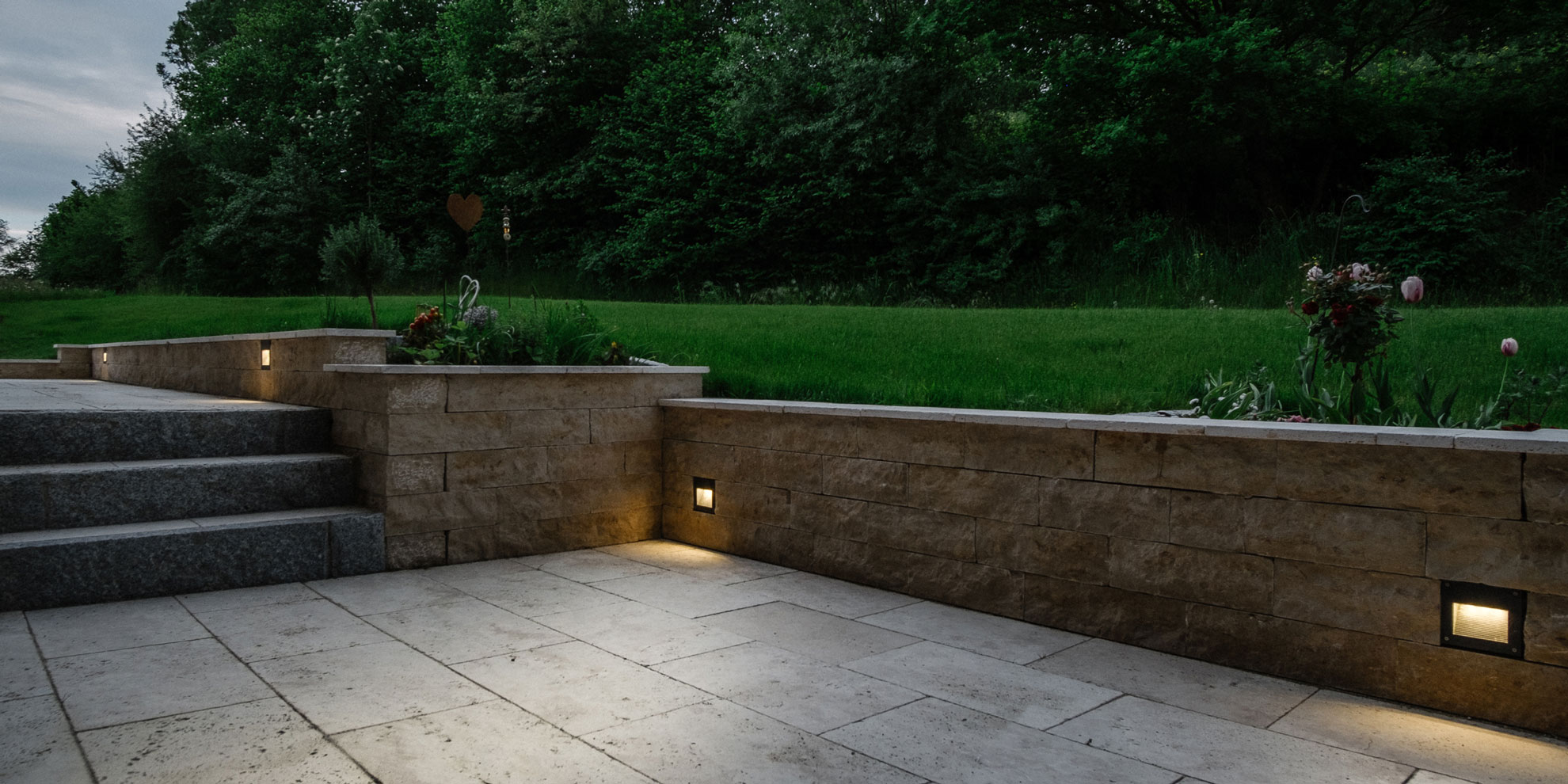 Wir verwenden alle im Garten üblichen Natursteine. Bei der Beschaffung von Natursteinen versuchen wir, wenn möglich, auf Nachhaltigkeit zu setzen. Unser Augenmerkt liegt auf regionalen Lieferanten und Produzenten. Wir bauen Mauern aus Naturstein, setzen Natursteineingangspodeste oder führen Belagsflächen mit Naturstein aus.